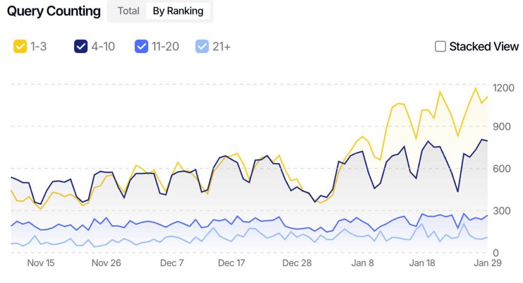 Query count by ranking position — Nov 2025 to Jan 2026